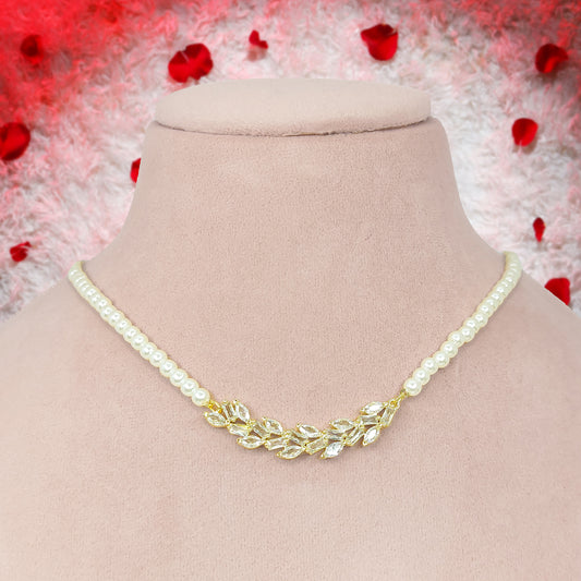 Gold Plated Elegant American Diamond Studded Leaf Shaped Necklace with Earring Jewellery Set