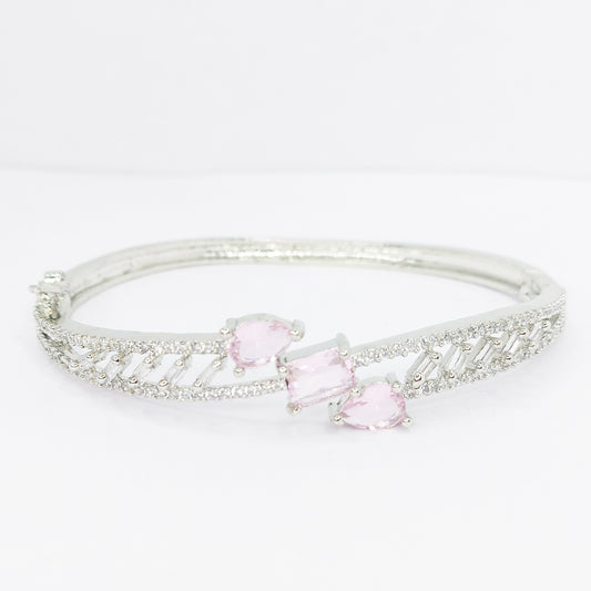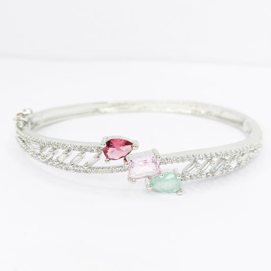 Rhodium Plated Silver Toned American Diamond Studded Kada Bracelet