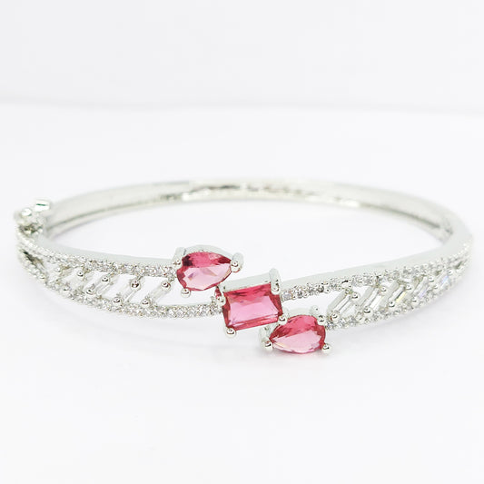 Rhodium Plated CZ Designer Bracelet with Dark Pink Stones for Women