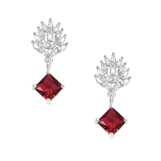 Ruby Red American Diamond Sparkling Shaped Drop Earrings