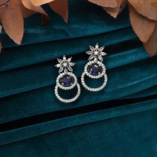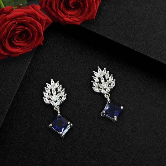 Royal Blue American Diamond Sparkling Leaf Shaped Drop Earrings
