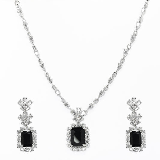Rhodium Plated Fascinating American Diamond Studded Necklace with Earring Jewellery Set