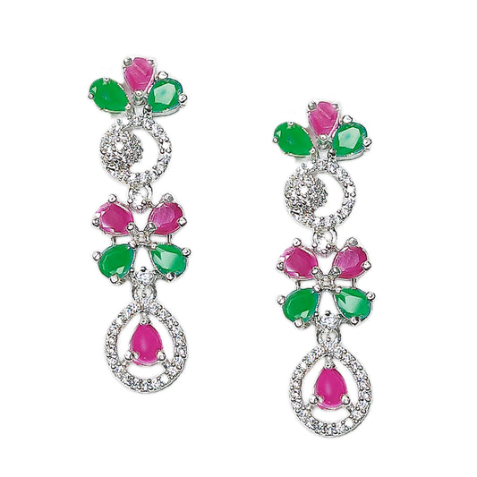 Rhodium Plated Floral Fascinating American Diamond Studded Necklace with Earring Jewellery Set